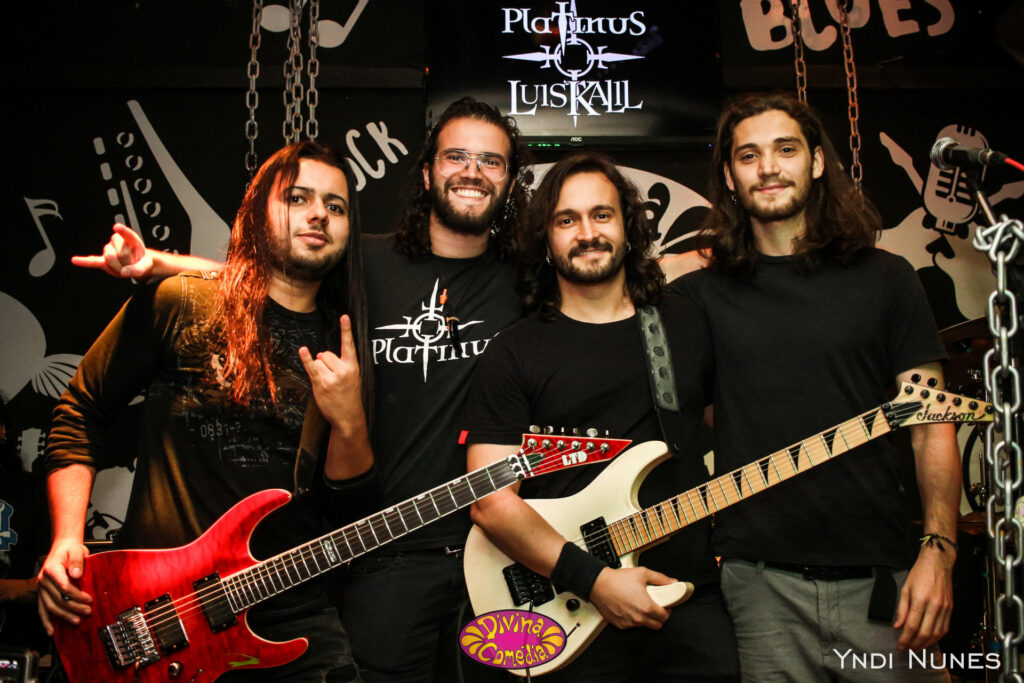 Mas antes dessa gravação de vozes teve um acontecimento muito importante na história da banda. O nosso primeiro show. Como a gente estava desfalcado de uma guitarra, o Will teve uma ideia. A gente sabia que por volta do início de dezembro o Luis Kalil estaria em Porto Alegre para uma turnê de workshops pelo Brasil. Como o Will e o Lucca tocaram com ele em 2016, pensamos em convidá-lo pra tocar com a gente nesse Tributo ao Big 4. E foi muito massa porque ele pilhou demais e abraçou essa missão! Boa parte das músicas já faziam parte do repertório e da vivência dele então não foi tanto um problema. Fizemos uns 2 ensaios antes pra acertar alguns detalhes das músicas e no início de dezembro de 2019 fizemos nosso primeiro show (até então não sabíamos que seria o único hahaha) na parceria Platinus + Luis Kalil na casa Divina Comédia, em Porto Alegre. Esse dia foi maravilhoso demais! Eu estava morrendo de saudade de tocar Metal ao vivo e esse dia me recarregou por completo!